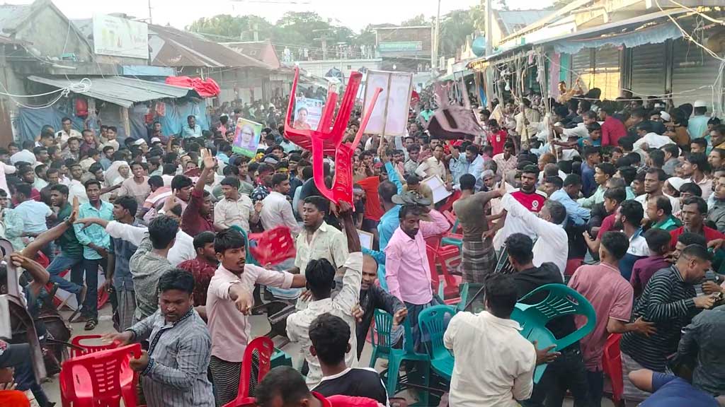 প্রত্যক্ষদর্শী সূত্রে জানা গেছে, পূর্বনির্ধারিত সময় অনুযায়ী অনুষ্ঠান শুরু হলেও, উপজেলা বিএনপির সাবেক যুগ্ম সম্পাদক লুৎফুল্লাহীল মজিদ নিশানের নেতৃত্বে একটি মিছিল সভায় প্রবেশ করতে গিয়ে বাধার মুখে পড়ে। অতিরিক্ত ভিড়ের কারণে মঞ্চের সামনে না যেতে পারায় তার অনুসারীরা ধাক্কাধাক্কি ও চেয়ার ছোড়াছুড়ি শুরু করেন।