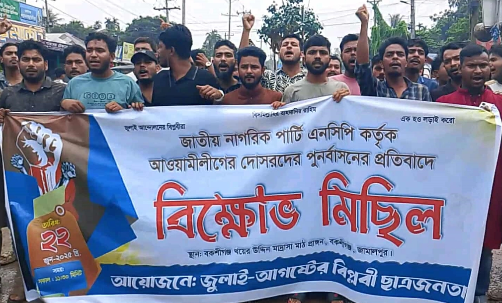 🟩 অব্যাহত চুরি, ছিনতাই ও চাঁদাবাজির বিরুদ্ধে বিক্ষোভ মিছিল ও সমাবেশ করেছে ছাত্রজনতা