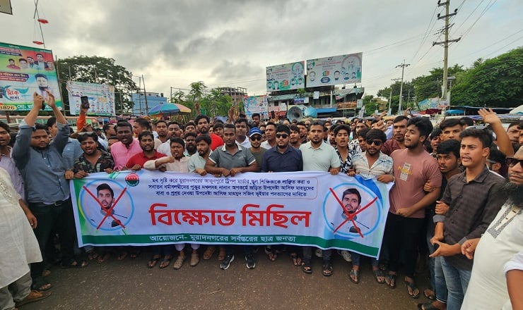 কুমিল্লার মুরাদনগরে উপদেষ্টা আসিফ মাহমুদের বিরুদ্ধে নানা অভিযোগ তুলে তার পদত্যাগের দাবিতে বিক্ষোভ মিছিল করেছে এলাকার ছাত্র ও সাধারণ মানুষ।